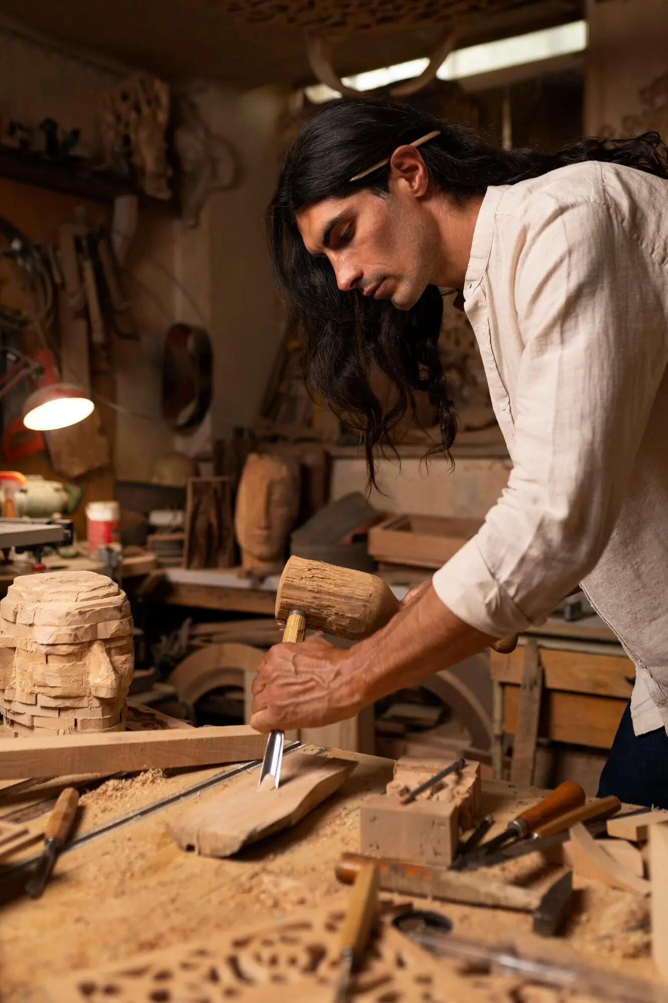 Löffelschnitzen im kühlen Schatten